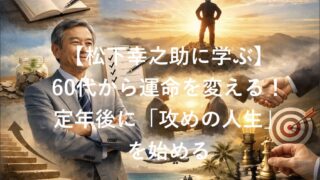 心理学 【松下幸之助に学ぶ】60代から運命を変える!定年後に「攻めの人生」を始めるための7ステップ 松下幸之助の生き方から学ぶ、60代からの「攻めの人生」への転換法。定年後の不安を希望に変える7つの行動ステップと、隠れた資産の活かし方を具体的に解説します。 2026.01.22 心理学