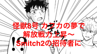怪獣8号 怪獣8号リラックス17話前編・カフカの夢で解放戦力上昇〜Smitch2の招待者に 今回は日比野カフカの夢の世界にようこそ!という感じで、巷で人気のゲーム機Smitch2を購入するのに、招待される権利が必要なようです。明晰夢(めいせきむ)をカフカは体験中のようで、自分が今夢を見ていると自覚しながら見る夢のことみたいです。カ... 2025.10.03 怪獣8号
